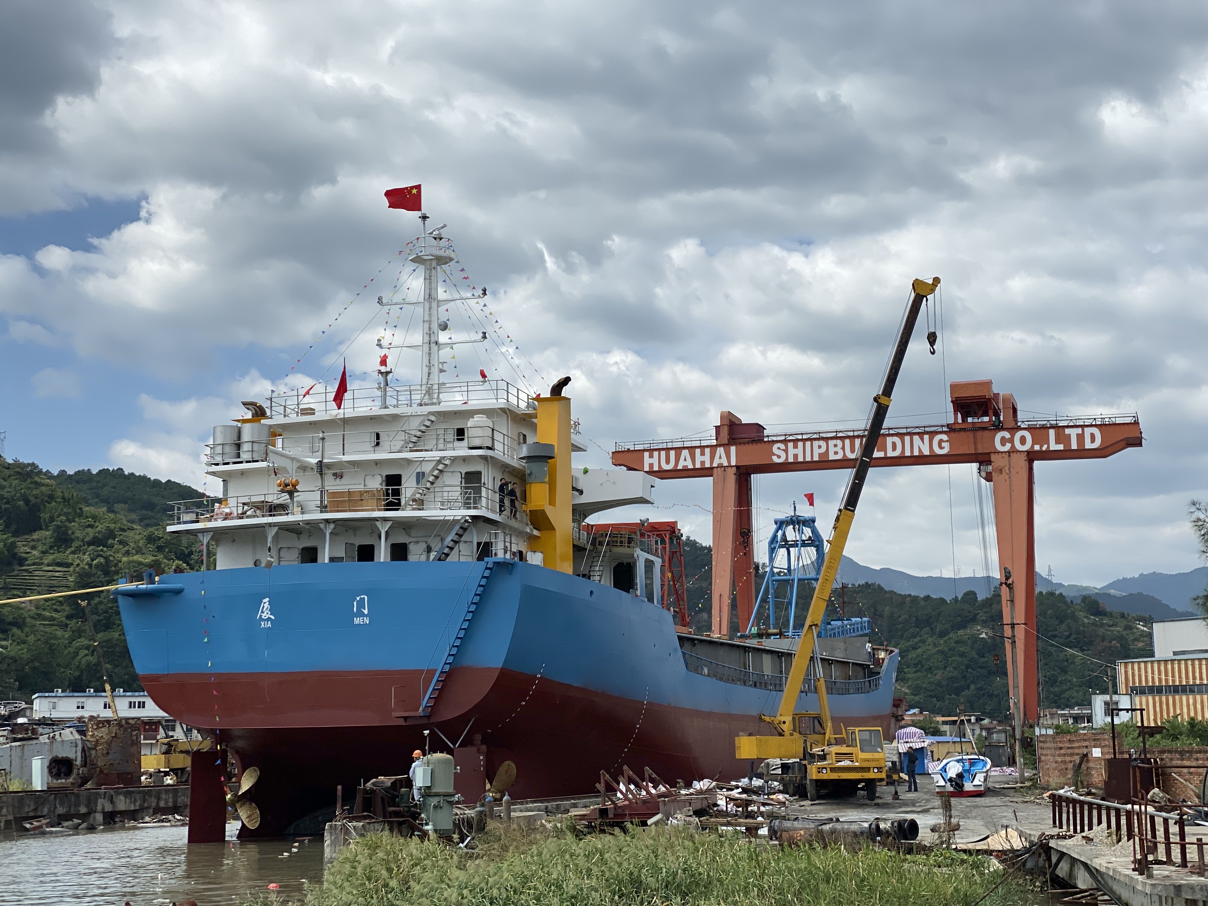 Note: Fujian huahai shengshi heavy industry co., ltd. newly built 89.8m coastal sand dump ship launched. the ship owner's dime